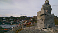Videre kjørte vi tilbake mot Rv303, men tok av mot Nordre Skisaker gård (ved drivhusene) og tok veien som var merket Ranavikveien, kjørte denne bare noen meter før vi tok til venstre innover til parkeringen ved første bommen. Gikk/rusla videre innover og oppover til Kjerrningberget. Her ligger hyttene >>>