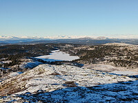 Mildt og lite vind i dag, og deilig å komme opp over tåka som har ligget tungt i flere dager. Tok en noe uvant rute - dels i terrenget - inn til toppen, for variasjonens skyld, men ble dermed også etter hvert litt våt på beina. Møtte noen jegere på småviltjakt.