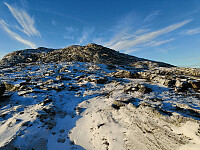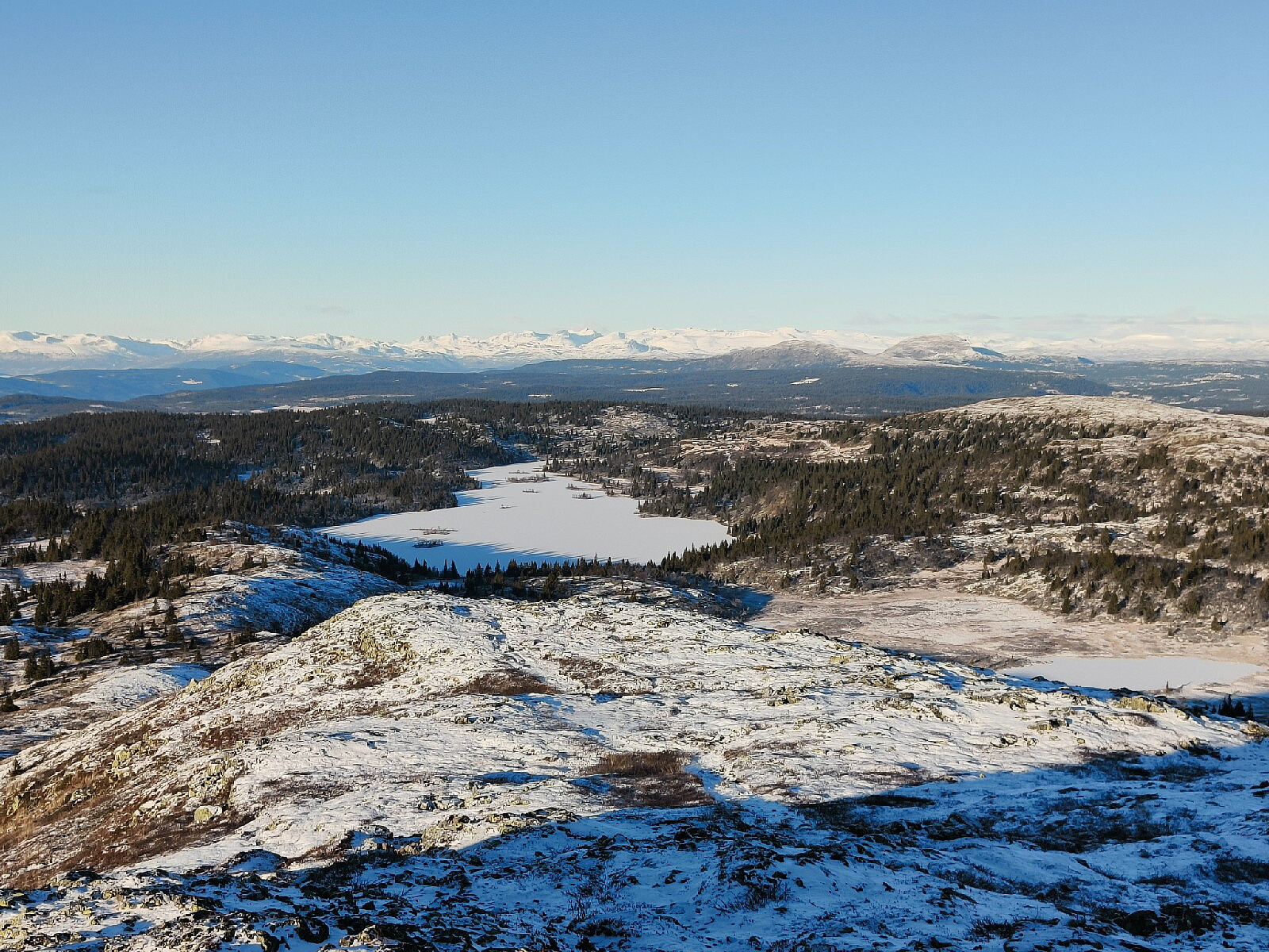 Trengte å klargjøre litt før vinteren på Skåleberget, og det var deilig å komme opp over tåka i dag også; sol og blå himmel, og lite vind. En diger ravn like ved toppen gjorde at min ankomst ikke gikk upåaktet hen, men ble varslet grundig og godt i dyreriket.