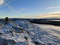 Trengte å klargjøre litt før vinteren på Skåleberget, og det var deilig å komme opp over tåka i dag også; sol og blå himmel, og lite vind. En diger ravn like ved toppen gjorde at min ankomst ikke gikk upåaktet hen, men ble varslet grundig og godt i dyreriket.