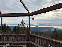 Tok sykkelen opp til stistart i dag, og sparte 90 kr. Det var gått mye snø på de siste to døgnene, men litt is lå igjen i stien oppe på nordryggen. Fortsatte over toppen i dag, og ned til utsikten i sør. Det ligger en del grove trær over stien mellom toppen og ned til utsikten, så jeg må vurdere å ta med motorsaga her en gang.