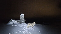 Aron måtte også få litt trim i dag så da ble det en kveldstur. Minus 20 ved start men betydelig mildere oppi høyden. Aron sprang løs som vanlig.