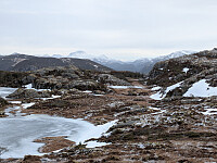Denne gangen kjørte jeg også til Rød og videre forbi Vangsåsen. Passerte Rødsvatnet og fortsatte til nordenden av Strandavatnet for parkering. Målet var SKAVDALSFJELLET 362 MOH. Starta turen etter en hyttevei og videre etter en traktorvei opp mot skogen. Herfra gikk det en tydelig sti med litt utydelig merking. Ovenfor tregrensa var det vardet opp til to vakre navnløse vann (294 - 290 moh) Jeg passerte vannene og gikk opp til den markerte toppen. Litt hard snø mot toppen. Varde og navneskilt på toppen. Det snødekte Heilhornet er godt synlig fra de fleste toppene i Nærøysund. Retur samme rute men på vestsida av vannene. 4 km. T/R.