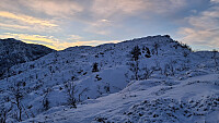 Tur med gamasjer. Brodder var ikke nødvendig Slak rute opp og bratt rute ned. Dyp snø i søkk og skar. Veldig moro å skli nedover de bratte bakkene, hadde ikke klart å gå oppover samme rute ihvertfall.
