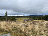 Kjørte inn til Revsjøen, og parkerte. Gikk opp på Nonstjønnkampen, der tok Trym og jeg en god rast ved varden. Mens vi satt der og koste oss med utsikten innover fjellheimen, kom det plutselig en tordenskrall. Når jeg snudde meg, så jeg uværet sør og østover. Da var det bare å starte på turen ned, som gikk helt greit, hørte en torden til, men vi fikk ikke en dråpe regn før vi satt i bilen og kjørte tilbake til hytta.