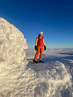 En nydelig torsdag i november og vi ordnet det slik at det var mulig å dra tidlig fra jobb og ta litt telefoner i bilen. Nannestad er jo et godt stykke unna. Her kjører mann tett på Hurdalsjøen og befinner seg på en måte på sørsiden av Skreifjella. Valgte å gå fra Vikkilihytta, og var sjeleglade for å ha fått på vinterdekkene til denne turen. Dette hadde ikke vært en trygg vei. Kjørte forbi skianlegget og snøkanoner. Knapt et menneske å se. Stor parkeringsplass med kun en bil. Godt med skilt og noe som lignet en traktorvei i starten. Gikk snart over i sti, først bratt og mørkt, så flatere, lyst og fint. Snølagte myrer og glissen skog. Mye islagt under nysnøen, så måtte gå forsiktig. Trodde vi så toppen på et tidspunkt, men nei, det var lengre enn vi trodde. Kom først >>>