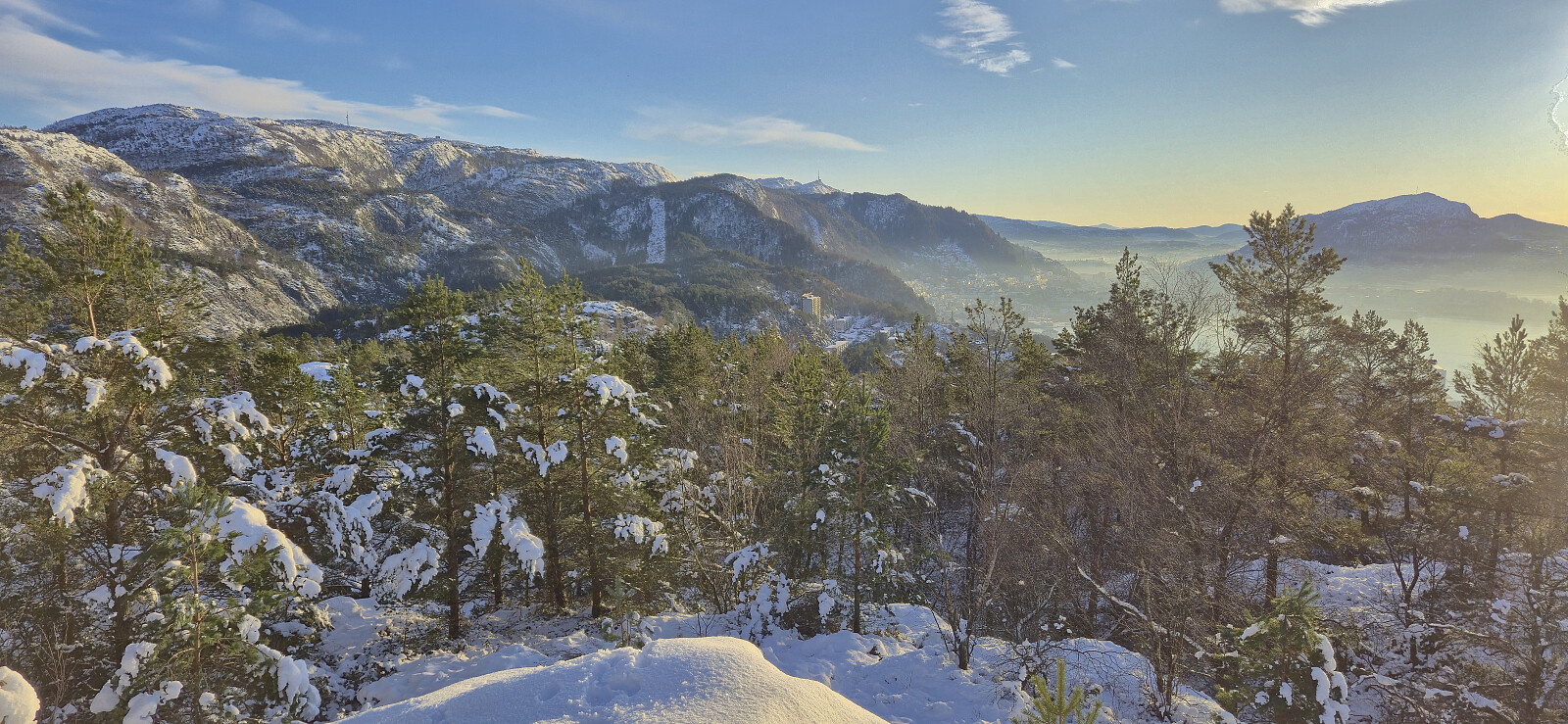After a joint hike via Røvhaugane to Åberge, I continued on my own along the gravel road to Hølsete before following the marked trail via Ljøtaholet to the excellent viewpoint at Skjeggen and finally returning to Sogndalsfjøra via Hølsete.