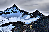 Tok en kveldstur opp Skitntinden med Hanna da jeg var ganske motivert til å komme meg opp til hovedtoppen etter utallige besøk av skitoppen tidligere i vinter. Vi hadde opprinnelig planlagt å gå en travers fra Skitntinden vestover mot Middagstinden men tok Skitntinden som hovedmål da vi ikke hadde noe anelse om ruten videre mot Middagstinden og om det skulle kreve sikringsutstyr eller ikke. Vi samkjørte til Kattfjordeidet og valgte å gå opp den vanlige ruten som brukes på vinterstid da den tilbyr minst mulig kratt og busker i starten. Likevel var det ikke den fineste skogstur noensinne og jeg glemmer hvor mange ganger jeg savnet skiene på beina her. Uansett, etter å ha kommet svettende over tregrensa kunne vi kose oss litt mer med å gå på fast underlag og nydelig steinur opp mot >>>
