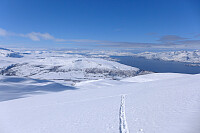 En rolig tur til Skitntind i lag med Fiona. Det var deilig å gå på tunge ski etter å ha slitt med å kjøre ned på tynne ski da vi gikk toppturkonkurransen dagen før og enda finere at fjellet var stort sett tom for folk! Vi gikk ikke til skitoppen, bare til den lille fortoppen lenger sør.