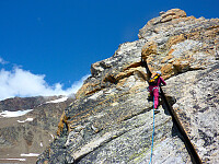 Before heading back down to Champex-Lac we took breakfast at the Orny hut at 7am before going out to climb a route called Papa Paye (5b) on Gendarme d'Orny (route 4) but with the 5c+ final pitch of Papa Paye Encore (route 3). Despite my initial scepticism at the start of the climb it actually turned out to be a really enjoyable route, although I was pretty glad I was a) not doing any of the leading and b) not carrying a rucksack.....