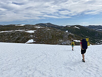 Utnytta finværet til en treningstur + pf50-rydding før litt sen start på kontoret. Grei men noen steder våt sti til Bukkeskaret. Deretter svak sti/tråkk langs ryggen mot Skitnfonnegga og videre over Skitnefonneggas nordtopp til Hetta. Ryggen er fin og lettgått (noen punkter der man må ta armene til hjelp). Ryggen langs Skitnefonnegga er litt smalere og krever litt ofter bruk av armene, men uten vanskelige eller speiselt utsatte punkt.