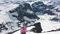 Fantastiske utsiktstopper, med nærkontakt til den berømmelige R2-linjen (nedturen mellom nabotoppene Månvasstinden og Storbua). Tok også turen bort til nordvest-toppen på Kjøsen, og har registrert den :-). Nedturen (mot nordøst) bar preg av den plutselige varmen som kom denne lørdagen. Utløste sørperas i hver sving i de bratteste hengene, men greit å svinge unna (ufarlige ras). Nedfarten er forøvrig fantastisk, og frister til gjentagelse (da >>>