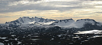 Start fra Krossbu kl 0940. Solotur. Skyet vær, men ingen nedbør. Nysnø på toppene over ca. 1700m. Gikk den vanlige ruten oppover Veslfjellet og dreide nordover mot 1700-høyden sør for Nufsfonne. Oppe på dagens første topp Hurrbreatinden , som jeg også besøkte 28. mai i år.
