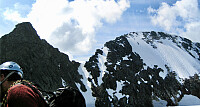 Etter en spisepause fortsatte vi ned i skaret mellom Nørdre og Store der vi var oppe kl 1425.