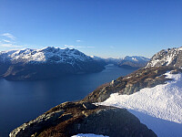 Jeg la av gårde oppover Fjellveien som etterhvert går over til en god og tydelig merket sti helt til topps. Ferjemannen hadde tipset meg om at det var en steinbu like under toppen, utrolig hvor mange hytter og buer som finnes på toppene rundt om her... Her er såpass at man kan overnatte og fyre i ovnen! Jeg tok meg desverre ikke tida til å kikke på den da jeg heller prioriterte >>>
