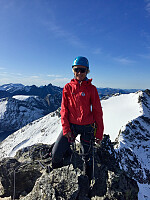 Det var spennende klyving og forsering av bratt terreng i endel snødekte partier bortover mot siste artige klatredelen mot toppen. Vindstille og fantastisk toppopplevelse i strålende vær. Det er lite som kan toppe dette!