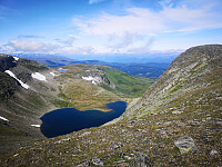 Varm dag og noen km innmarsj på traktorvei innover den vegeterte dalen fra Markhus. Mye klegg og lite interessant terreng. Valgte å la Vinjar få slippe å gå på toppen, da motivasjon var manglende og fullt forståelig. De ventet på meg mens jeg fortsatte mot toppen etter at vi hadde gått ca 3 km. Fulgte traktorvei til endes, deretter etter en slags merking oppover skogen mot skaret, før jeg skar oppver mot toppen. Ikke det mest givende terrenget, men grei utsikt fra toppen. Det er nok en bedre tur når det det er en kjøligere værtype.