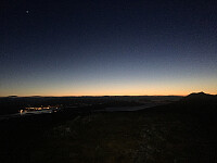 Fulgte grusvei oppover fra parkeringen. Denne gikk i lange slake låmer oppover til den omsider gikk over til en fin sti. Måtte på med lykta da jeg begynte på stien. Veldig flott sti og terreng bortover den slake ryggen mot toppen. Dette er nok en fin løpetur! Jeg tok den som en fottur med kun lette joggesko og var fremdeles tørr på beina da jeg kom bed til bilen igjen selv om det var antydning til småregn i lufta, deilig!