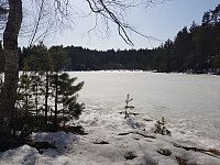 Hadde en "mislykket" tur hit for noen dager siden. Aldri mislykka da men fulgte rådet om at det ikke er noen skam å snu. Idag, 1.påskedag, var forholdene bedre med sol og perfekt trugesnø. Denne gang betalte jeg bompenger og kjørte inn forbi Gimildammen til en plass sørvest for toppen. Starta med å skritte over bekken som er tilførelselsbekk til drikkevannet og brukte appen for å navigere meg i riktig retning. Kort tid etter start dumpa jeg over en setervang og jeg registrerte denne som en severdighet. Mye elgspor innover og var spent på om jeg ville støte på skogens konge. Greit framkommelig og etter 40 minutter var jeg på Raudfjell. Noen bilder og appelsinbåter senere gikk jeg tilbake til bilen fornøyd med dagens fangst.