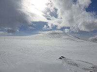 Solskinnstur på kjente topper med Egil, Siri og Camilla, Snø og Storm. Bamse fikk være hjemme i dag. Fantastisk fint føre på første halvdelen av turen da det hadde vært kaldt om natta. Første pause tok vi på Snydda fortsatte etterpå over Steinfjellet. Greit opp til Nonsfjellet og videre bort til Buslættkamben. Rente ned til Armoa, her tok vi en god pause i solveggen. Videre opp Åmellomfjellet og til Storhornet, videre til Elghøa. Dessverre var vi så sent ut at det var frosset på da vi rente ned. Skikkelig hard skare på snau fjellet, men bedre ned i skogen, en herlig dag på kjente trakter.