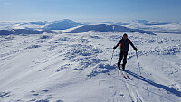 Yr meldte vind på toppene i dag så vi gjorde om planen vår og valgte Jørntinden i stedet for Rotfjellet. Parkerte ved Granli p-lomme og gikk rett opp lia sørvestover, jevn stigning opp til topps.Tok en lang pause ved varden i ly for vinden før vi returnerte ned til bilen. Dette var en veldig kort topptur men vi fikk til gjengjeld fin nedkjøring.
