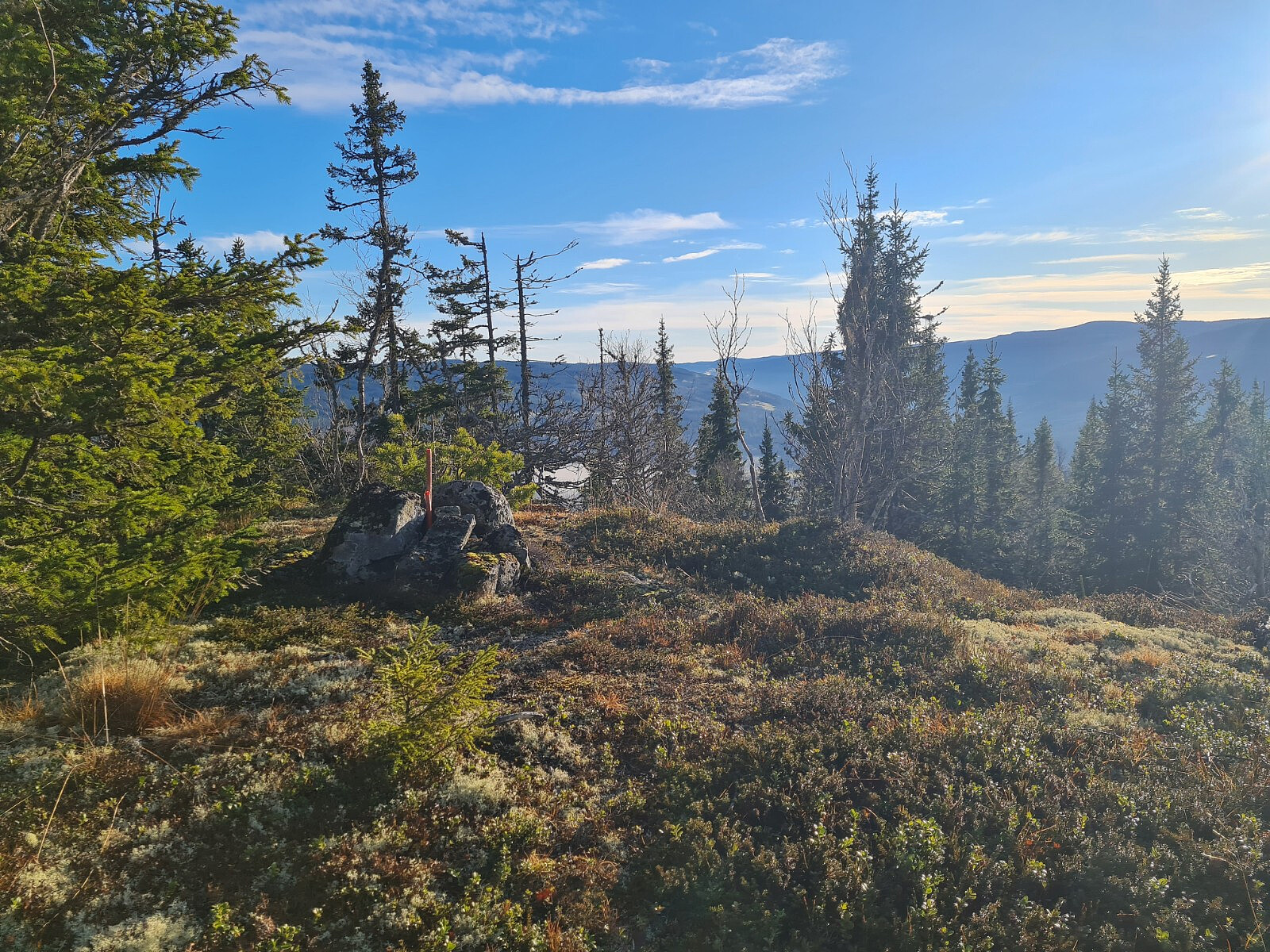 Tur på Prestkjerringa i dag. Kjørte til Nysetra, hvor det var et par biler med elgjegere. Gikkvanlig rute til Prestkjerringa. Herfra over Rævskorohaugen og Flugstadfjellet, og direkte opp på Hindalsfjellet. Nede på Nysetragikk jeg bortom Steinehytta som har fått et flott tilbygg. Kjørte deretter til Hærfjellet parkeringslomme og gikk oppom Hærfjellet. Turlengden er ibergnet 2.5 km bilkjøring, så gåturen blir 13.7 km. Nede ved bilen greide jeg å avbryte peakbookappen, i stedet for å avslutte den. Flott turvær, men en kald nordavind.Så to andre vandrere i dag.