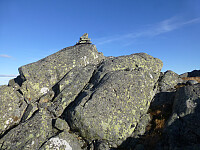 En fin rund kul på toppen, litt utsikt på kantene og vi kunne se Rorgefjell og Mjøltenuten. Det ble litt mat før vi bestemte oss for å gå over toppen og ned på andre siden, for så svinge og komme ned til >>>
