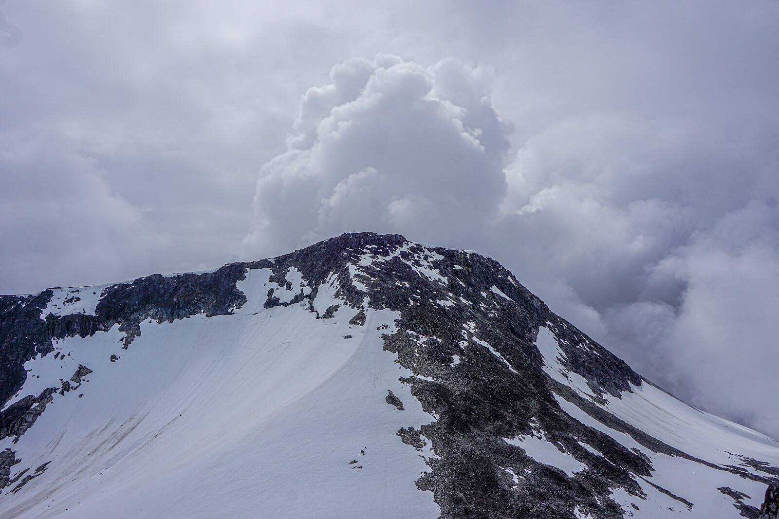 Start fra Sognefjellet i 9 draget. Var meldt tjukk tåke og nedbør denne dagen så planen var opprinnelig noe annet lort for å få luftet beina. Men da både Fanaråken og Steindalsnosi var tåkefrie så ble dette raskt planen. Ville dog angripe nordryggen så tok med isøks og et par stegjern i sekken. Måtte ha recon på skaret opp/ned både Fanaråken og Steindalsnosi i forbindelse med en føringstur for Jotunheimen Arrangement