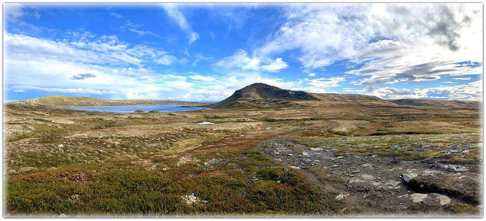 mot aksla som er begynnelsen på stigninga mot toppen. Nede ved Forollsjøen så vi noen villrein på beite. Fine forhold for rein her da det er mye reinmose i dette området. Det ble brattere etter som vi nærmet oss toppen å nå ble det stor "trafikk" av turgåere på opp og nedtur. Den første regnbyga kom og når vi nådde toppen fikk vi en kraftig byge som velkomst. Det la ingen demper på humøret da gleden var stor over å få nyte den flotte utsikta tross alt. Ei kongeørn stakk også innom og hilste på. Tok oss god tid på toppen med mat og drikke før returen startet. Mange var innom toppvarden mens vi var her så det var trolig en av de store turdagene for denne høsten. Vi var enige om at dette hadde vært en flott tur så muligheten for en tur tilbake ved en senere anledning er stor. Fin og minnerik tur!