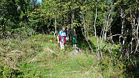 Trig-bolt i fjellet på GPS 6587889 5603309. Turkasse med bok fra TOT. Fint område men ikke noe særlig utsikt pga mye løvtrær. Kanskje bedre når bladene er falt av? Tilbake til hytten på toppen som Otto besøkte. Ingen folk eller kaffe der idag! Vi hadde likevel en fin pause med herlig bakverk fra With i Tønsberg før vi tok fatt på returen. Da vi kom tilbake i det mest markerte dalsøkket kom vi inn på en litt annen rute enn på der vi gikk opp, nemlig noe som en gang hadde vært en traktorvei som går bratt nordover og nedover mot stien der vi hadde kommet opp. Uværet med de svære nedbørsmengdene tidligere i august hadde gjort enorme skader på alle skogsveiene i området vi hadde gått opp, men aller mest på den rette og bratte veien vi nå gikk ned. Veien var fullstendig ødelagt og omgjort til et steinur-lignende område over flere hundre meter! Nede ved bilen igjen kl 1520. Turdata: 6 km, gangtid 1 time opp, 50 min ned gjennom steinrøys, 30 min pausetid. Fin tur, men vi kan absolutt styre vår begeistring over disse skogstoppene!