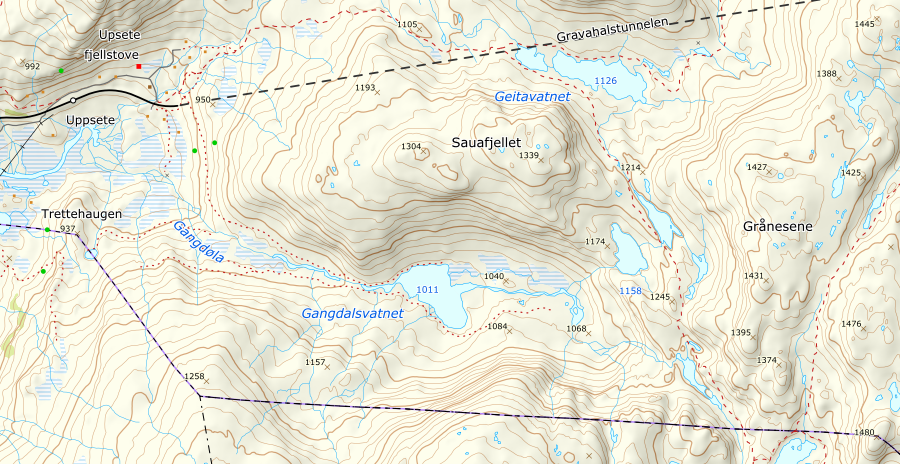 En flott påsketur fra hytta sammen med Geir og Kristoffer. Turen fulgte sommerstien mot Kaldavasshytta via Upsete Fjellstove, Geitevatnet og Skreppesteinen. Omtrent en kilometer før hytta dreide vi til venstre og fulgte dalen rett nordover over Grånesene Øst (1425) og videre til Urdshovd. Litt tåke som kom og gikk innimellom, men stort sett sol og flott påskevær! Samme vei tilbake.