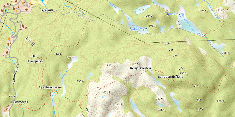 Klar for neste øytopp. Vi kjørte ut til den koselige lille bygden Rasvåg. Her er skikkelig sørlandsstemning med hvite hus og smale veier. Fortsatte oppover mot Hummarås P-plass, men i en av svingene der begynte bobilen å spinne og vi måtte rygge ned igjen til krysset. Folk kikket fra verandaen og lurte sikkert på hvilke tullinger som prøvde seg opp der. Hadde gått fint om veien var OK. Satte fra oss bilen der og snakket med en mann som bodde der. Han sa at her kunne vi stå, det er kommunal plass og mange parkerer der når de skal gå. Han sa at den veien vi prøvde å kjøre opp hadde rent vekk og var nettopp reparert, derfor var den bløt og vi spant med bilen. Her startet også en grusvei oppover og denne er merket til mange turmål, bla. Langelandsfjell. Vi gikk oppover denne, en bratt med fin grusvei som gikk over til en nydelig "vei" med deilig gressunderlag. Jeg kosa meg skikkelig her langs det lille vannet. Stien er godt merket helt til toppen og jeg er glad for at vi ikke kom oss opp til Hummarås p-plass for da hadde vi mistet denne fine stien opp. Bilder på toppen før vi gikk ned igjen den stien de andre her har gått opp og ned. Likte mye bedre den andre veien opp. Vi var også glade for at vi ikke kom lengre opp med bilen, da veien var enda mer ødelagt lengre opp mot Hummarsås. Anbefaler den veien vi gikk opp selv om den starter bratt og er lengre.