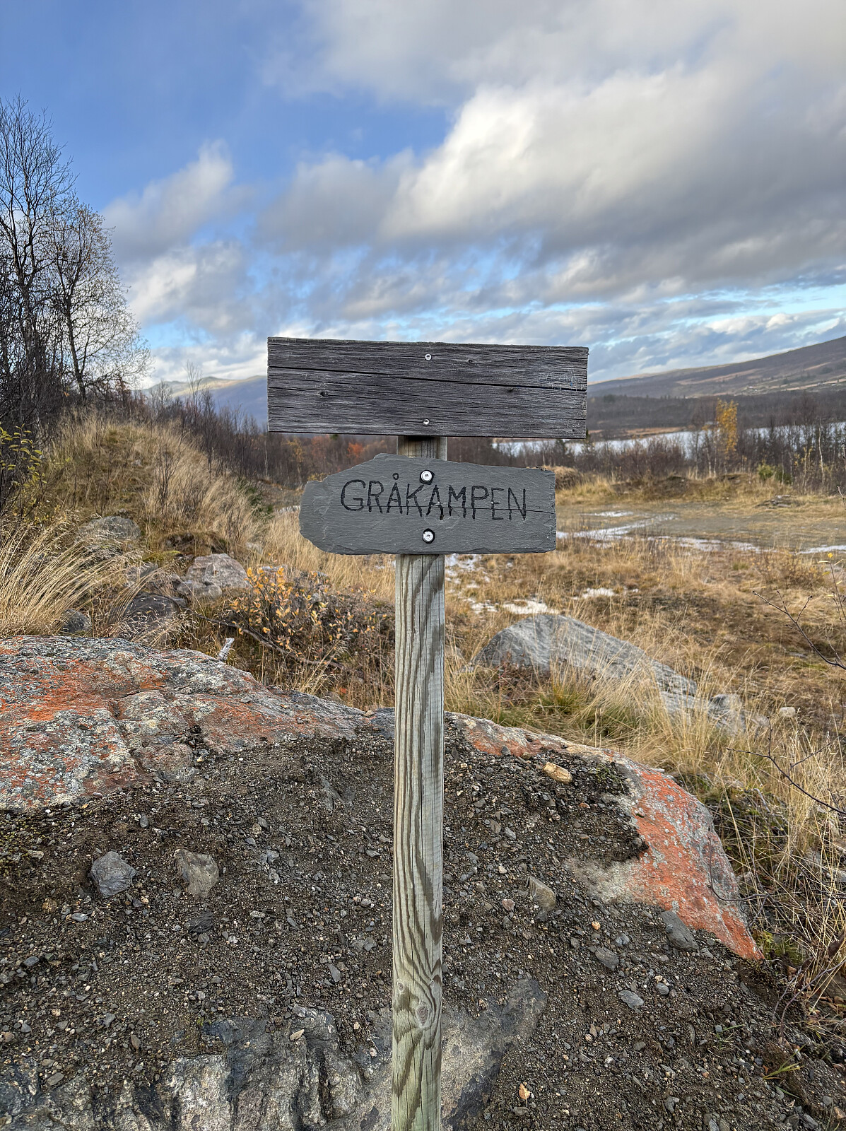 Vi gikk først til Gråkampen, og på vei ned tok vi en snarvei over til merkinga mot Hulabakkhula. Det var tydelig sti på det meste av snarveien. Den nye stien til Gråkampen trenger mer tråkk for å kunne kalles en sti, men gikk greit å følge merkinga.