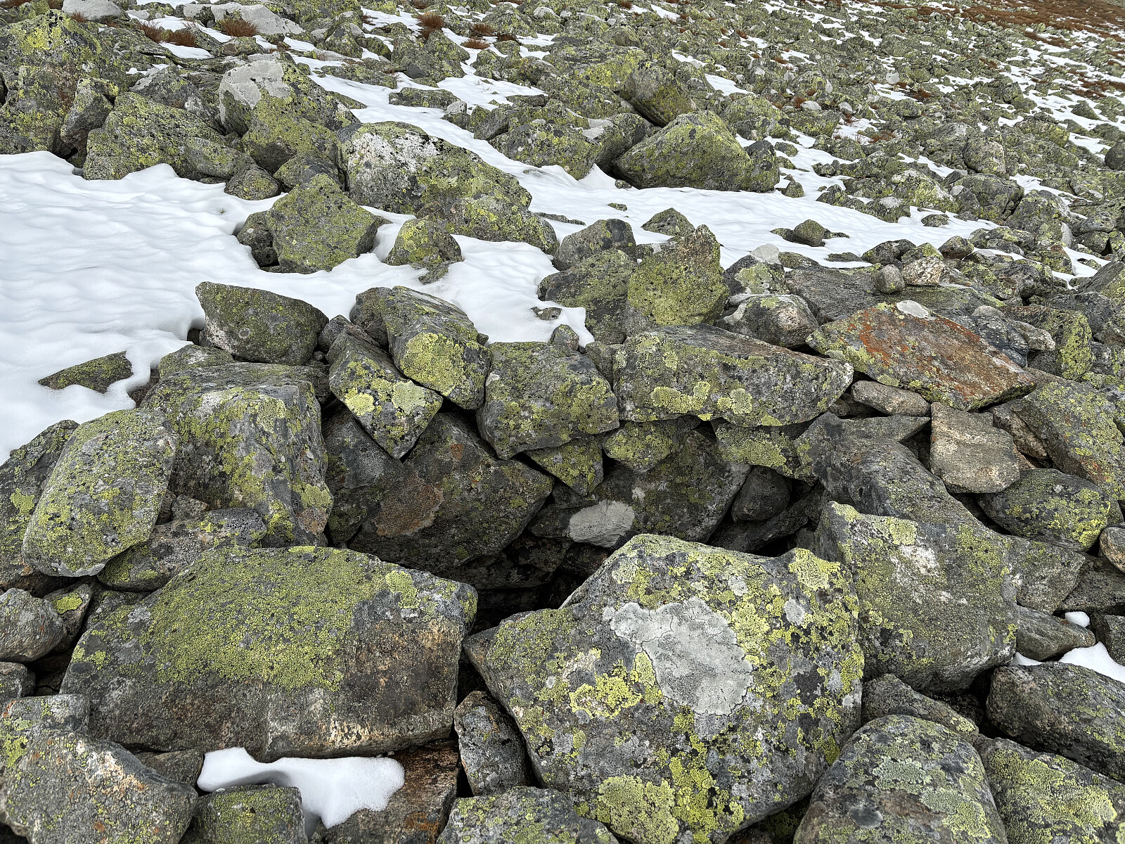 Vi gikk først til Gråkampen, og på vei ned tok vi en snarvei over til merkinga mot Hulabakkhula. Det var tydelig sti på det meste av snarveien. Den nye stien til Gråkampen trenger mer tråkk for å kunne kalles en sti, men gikk greit å følge merkinga.