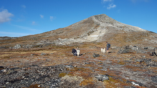 Videre fra her ble det lettere å gå bare de siste 100 høydemetrene blir det merkbart brattere men stien snor seg fint oppover. Siste etappe flater det ut fram til varden på toppen.