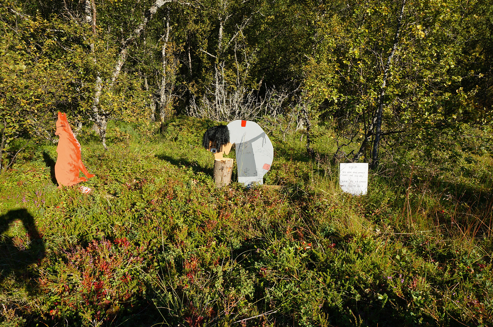 De holder på å lage en eventyrsti som kan være moro for barn ja kanskje voksne også, å besøke. Etter mange timer i solen begynte kroppen å sitre etter tur og vi fikk lokket med hundene opp i eventyrskogen.
