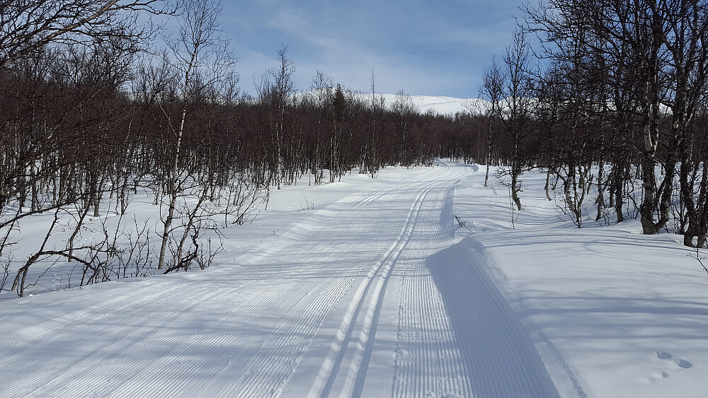Mesteparten av turen opp gikk etter godt merket og nypreparerte trikkeskinner, når vi kom over skogbandet fikk vi fin utsikt mot Jotunheimen. Lett å gå opp den siste stigningen før det flatet ut og vi fikk se selve dagens mål Ruten. Her oppe ved varden tok vi en lang pause i solvarmen før vi returnert ned til bilen.