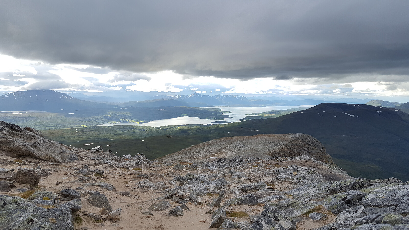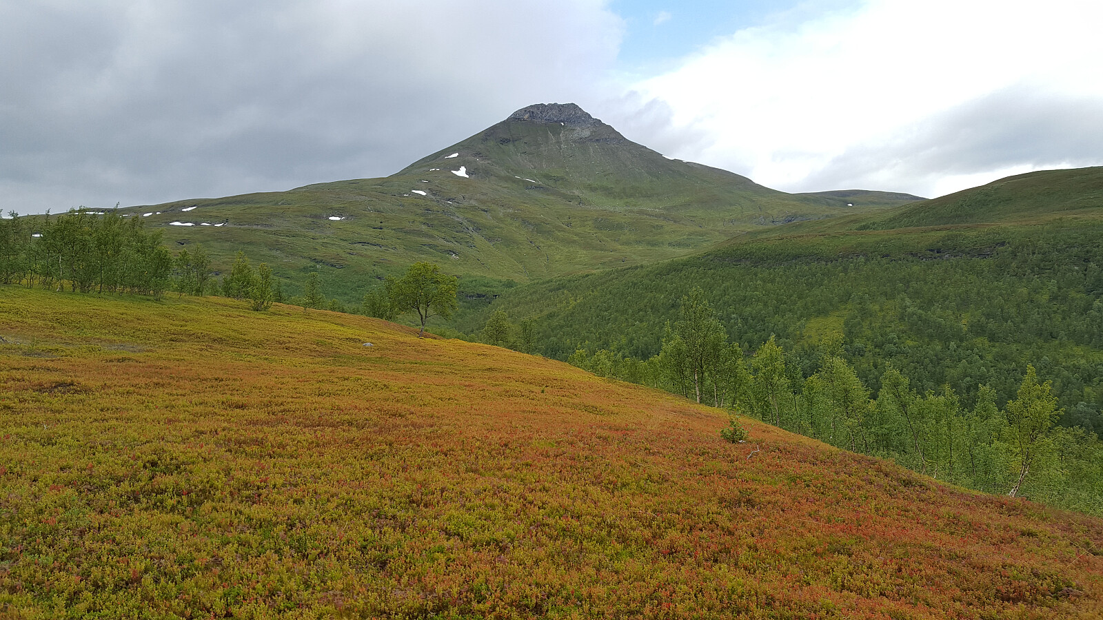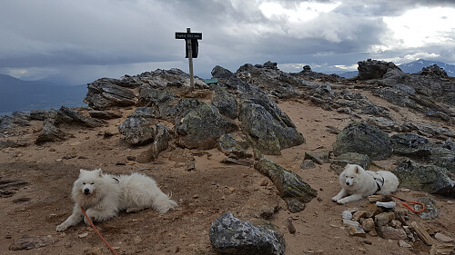 Siste turen her i nord ble Fugltinden. Vi kjørte nordover langs fjorden til Tennes, i krysset tok vi av til venstre og kjørete ca. 2 kilometer videre på skogsveien før vi tok av av til venstre og parkert ved bommen. Startet etter godt market tørr og fin sti i sandterreng sør i Storelvdalen. Etter stidele på ca. 350 meter ble det noen bløte partier, men fortsatt for det meste veldig fin sti. Gikk både sau og kyr på beite oppi den grønne fine lia. Fikk noen regndråper underveis, men lettet igjen før vi kom på toppen, veldig fin utsikt til alle kanter selv om det gikk litt regnbyger rundt om, så utsikten kunne vært enda bedre. Retur samme vei.