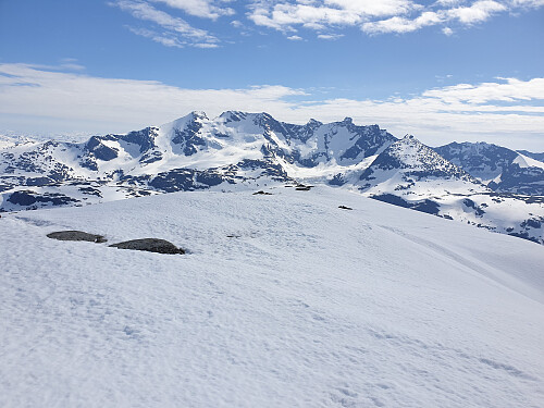 Kjørte ned til Prestesteinvatnet parkering, skiføre fra starten og helt til topps. Vi tok en god pause under Fannaråknosi og en enda lengre pause på toppen. Her oppe på Fannaråki var det ikke mye som minnet en om vår enda, mye snø rundt hytta. Retur samme vei.