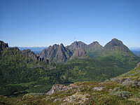 Egil og jeg tok med Inga og Kari på en liten fin travers. Plasserte en bil ved dyrlegen i Halsen først. Vi gikk fra Øvereng opp etter en god kløvsti opp til bandet. Mye bregner å gå i opp forbi skrentene videre greit på fint gras opp rygger til Sørtinden. Greit å følge ryggen til Dalsfjellet, ned igjen via Sørtinden, ned i Dalaskardet og lettgått opp på Vågsfjellet. Rotet med å finne stien ned til Halsen men fant den etter hvert. Fin varm dag i fjellet.