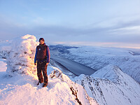 Hovsnebba var grei å gå opp nå i forhold til første gangen vi gikk opp her i 2009, merket sti helt til topps er luksus. Sola varmet godt så det ble en varm fornøyelse oppover bakkene. Herlig å nå toppen og se alle de fine fjella i rundt oss.