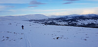 Gikk opp Nysæterlia og videre på skrå bortover til Storbekken deretter fulgte vi en renne til topps. Sur kald vind på toppen så her ble det bare en kort pause. Best å starte fra Fossem når en skal på Hornet men i dag var det ikke muligheter for å parkere, trengs flere parkeringsplasser rundt omkring i kommunen vår.