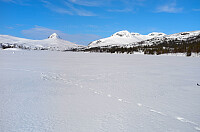 Fulgte scootersporet halvveis opp. Godt skiføre og helt vindstille. Returen var vel så bra som oppgangen.