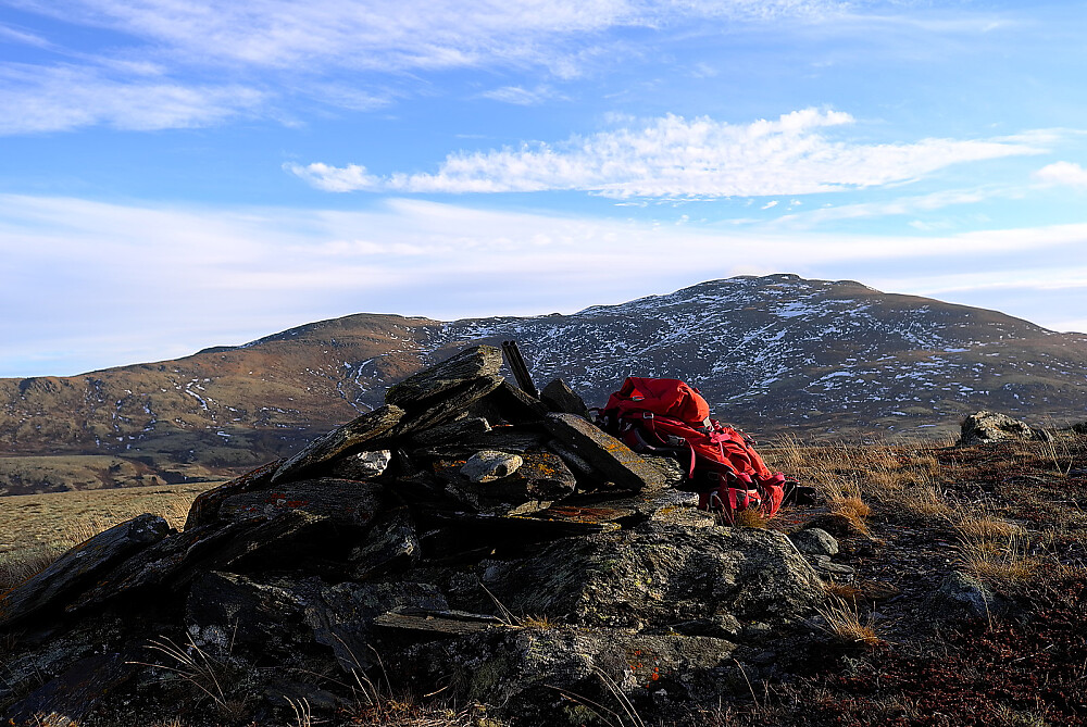 Kjørte Gisnadalen til veidelingen ved Kloppløkkja. Fulgte veien/stien opp lia til Falkhøa (988). Det var flere små varder på svaberget rundt toppen. Ok vær og fin utsikt mot Trollhøtta og Grythatten.