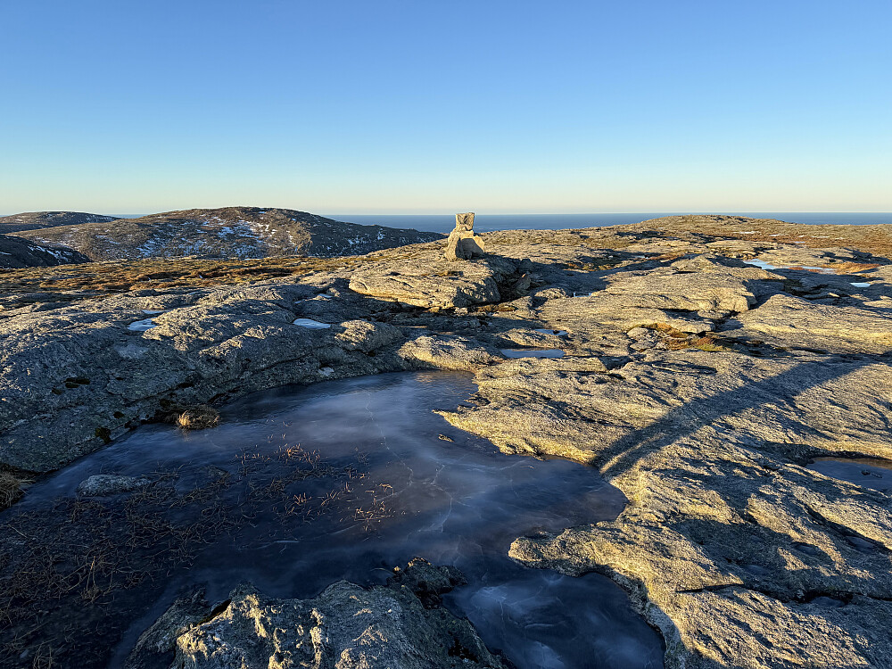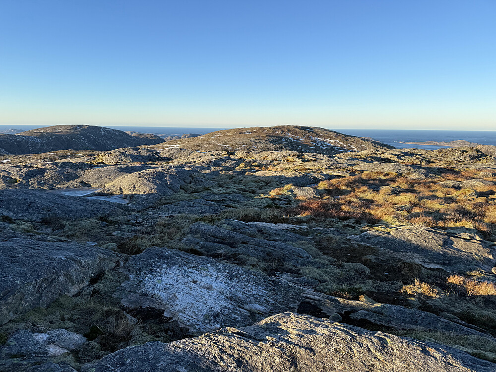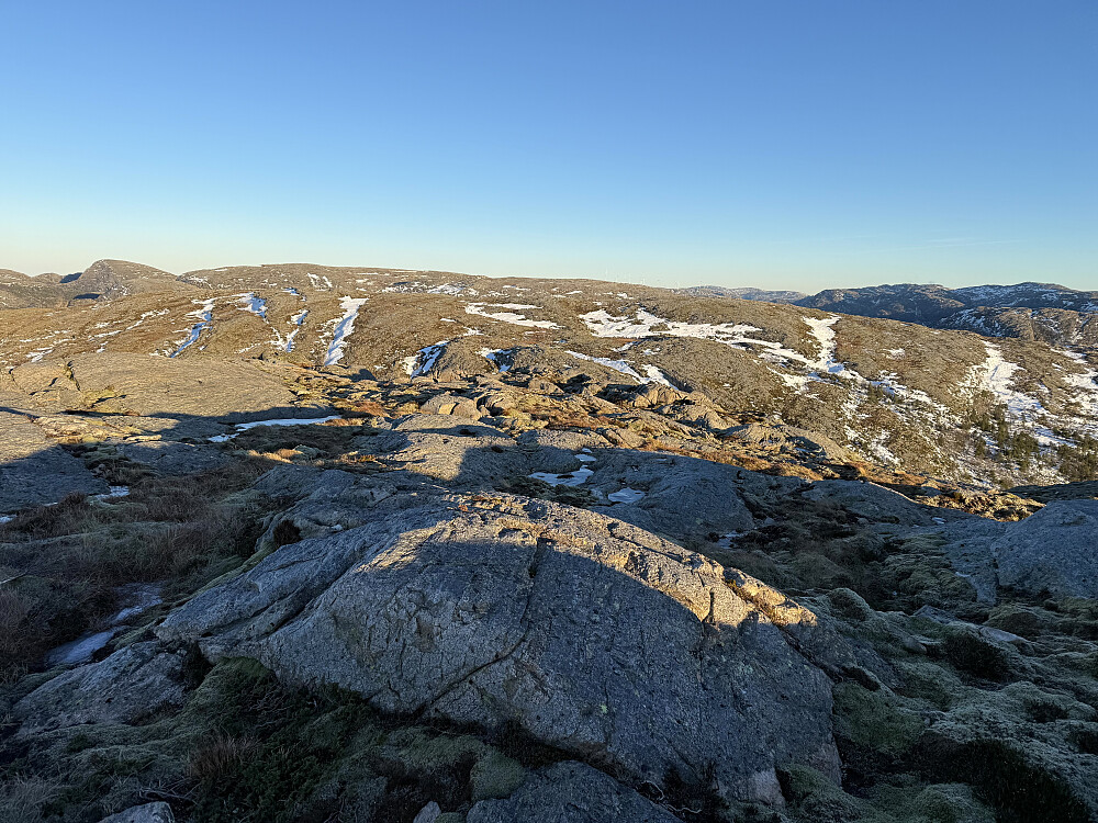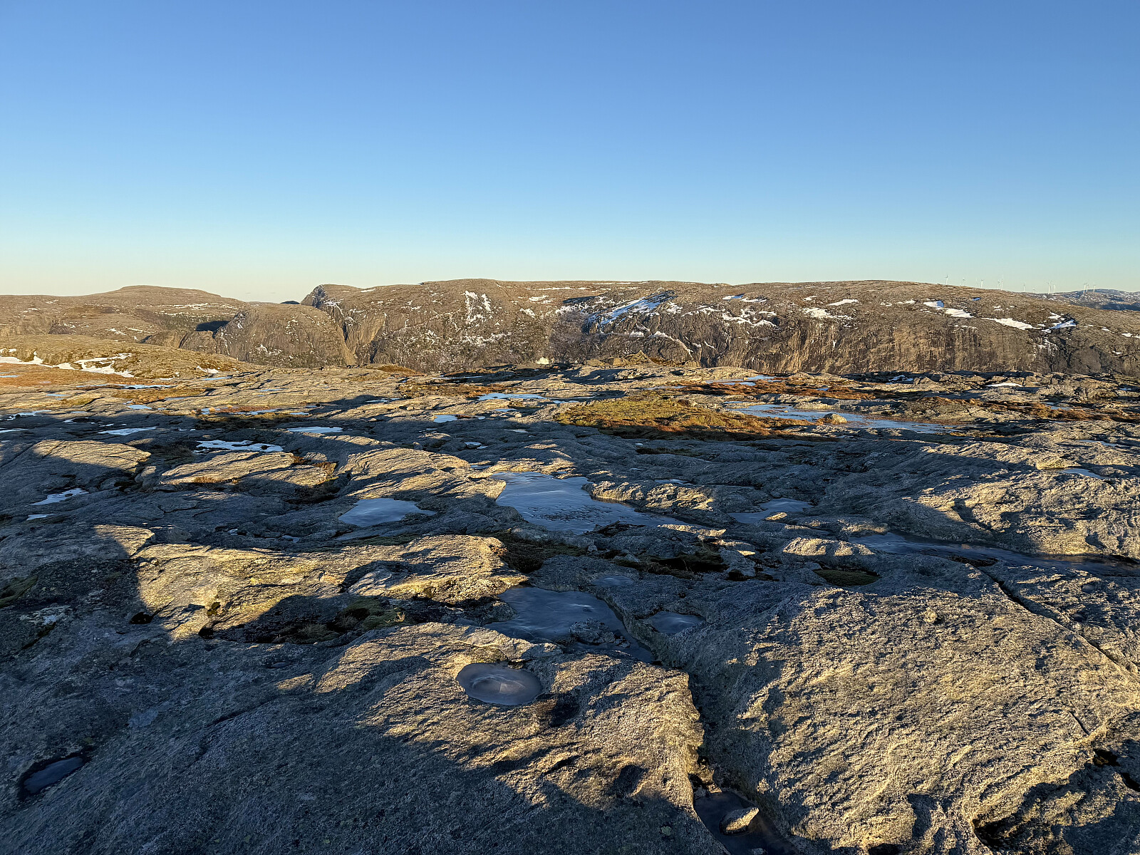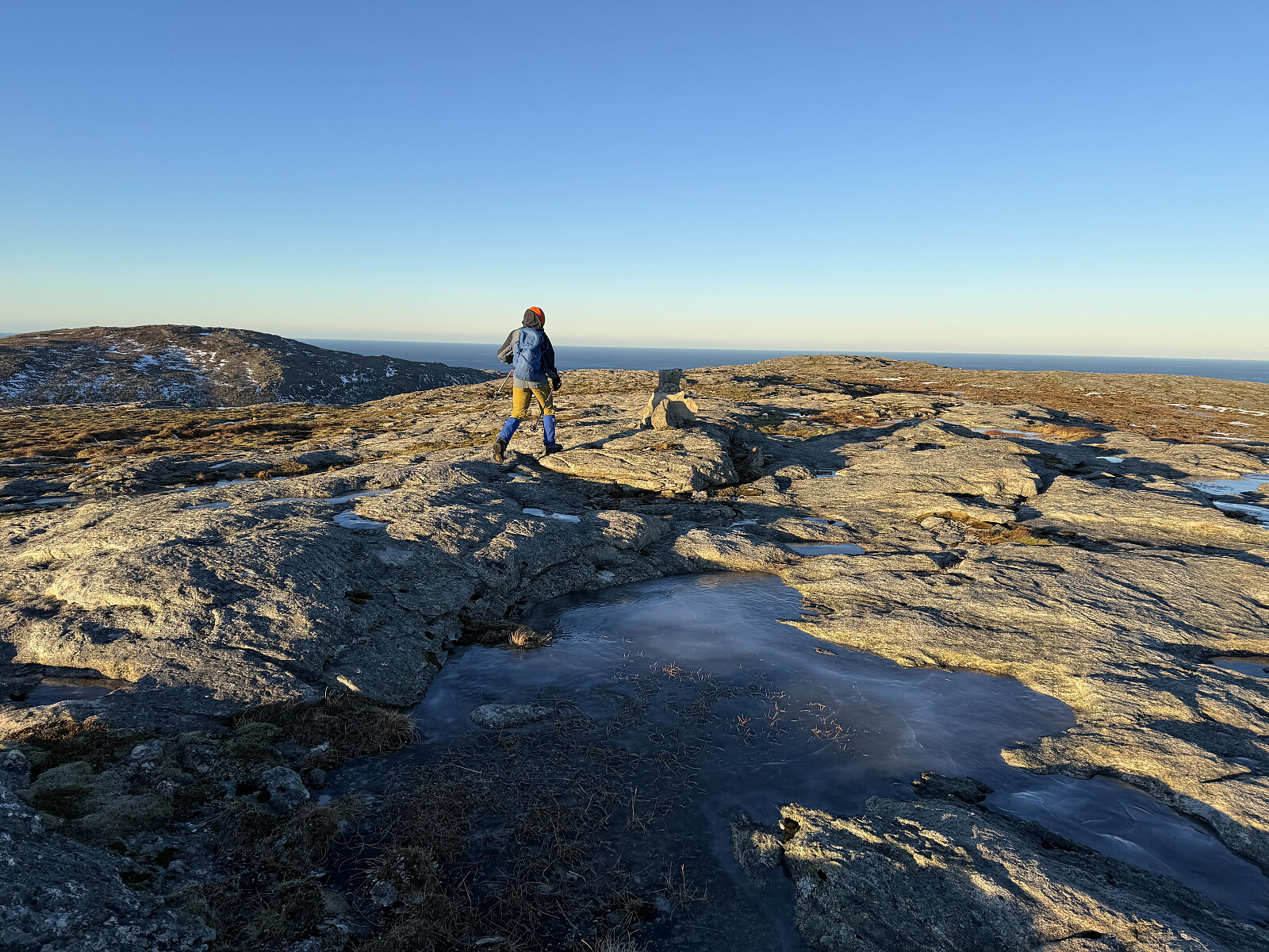 Rufsete terreng nederst, bedre i høyden. Flere bratte skrenter på hver side av Nordskaret. En kald og forblåst dag i sola. Stakk innom kafeen på Coop som serverte nystekte vafler.
