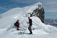 Dårlig vær 17 mai ble til flott vær 18 mai. Kjørte fra Gjøra opp til Vangshaugen turisthytte. Startet etter skisporet bratt opp Svøulia. Lettere terreng forbi Fremmervatnet, Rundvatnet og Storvatnet. Underveis passerte vi noen store jervspor, som trolig hadde passert tidlig på morgenen. La ruta via Svøubotnen og opp til Styggløypet. Et naturlig valg ble østryggen før vi ankom Seterfjellet (1812). Fin utsikt mot flere høye fjell i Sunndal kommune.