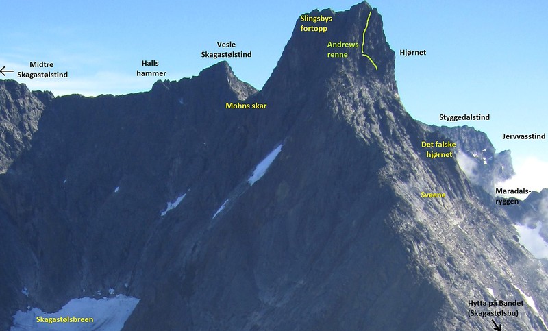 Disse svaene på ca 2200 meters høyde, er krevende klyving som ofte kommer overraskende på folk. Noen kjenner behov for tausikring "allerede her", ikke minst ved vått føre. Markante rappellfester på minst to ulike steder taler også sitt tydelige språk, og igjen er det særlig ved vått vær på vei tilbake at man tar rappell(er) her. Det er flere varianter opp her, med flere sva-seksjoner.