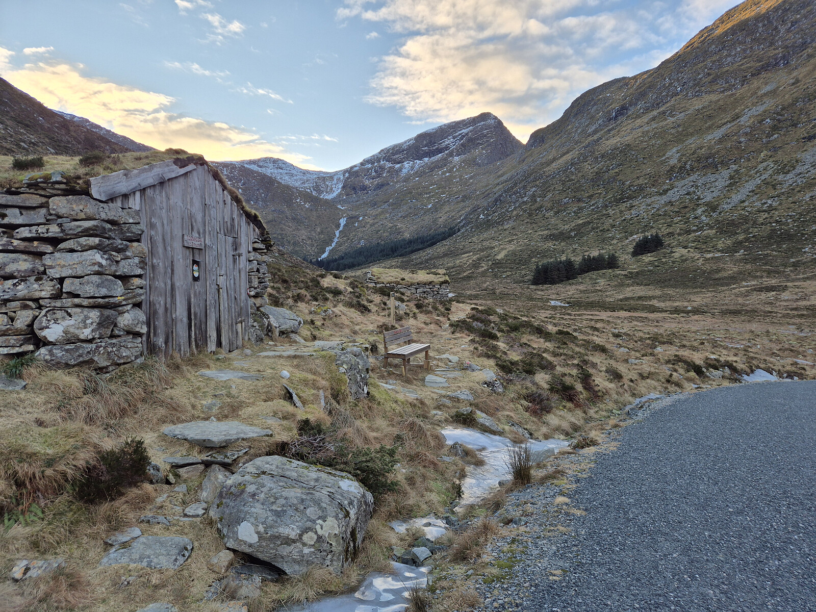 Parkerte ved tilrettelagt parkeringsplass for trimløypa. Fulgte trimløypa rundt og tok av ved eit tydeleg merke i tru at det var stien. Men eg forstod etter kvart at dette merket mest truleg kun var til ein postkasse som sto på nokre murar og at eg skulle venta med å gå av vegen litt lenger nord. Klarte etter kvart å finne den opprinnelege stien etter å ha krangla med nokre tre.