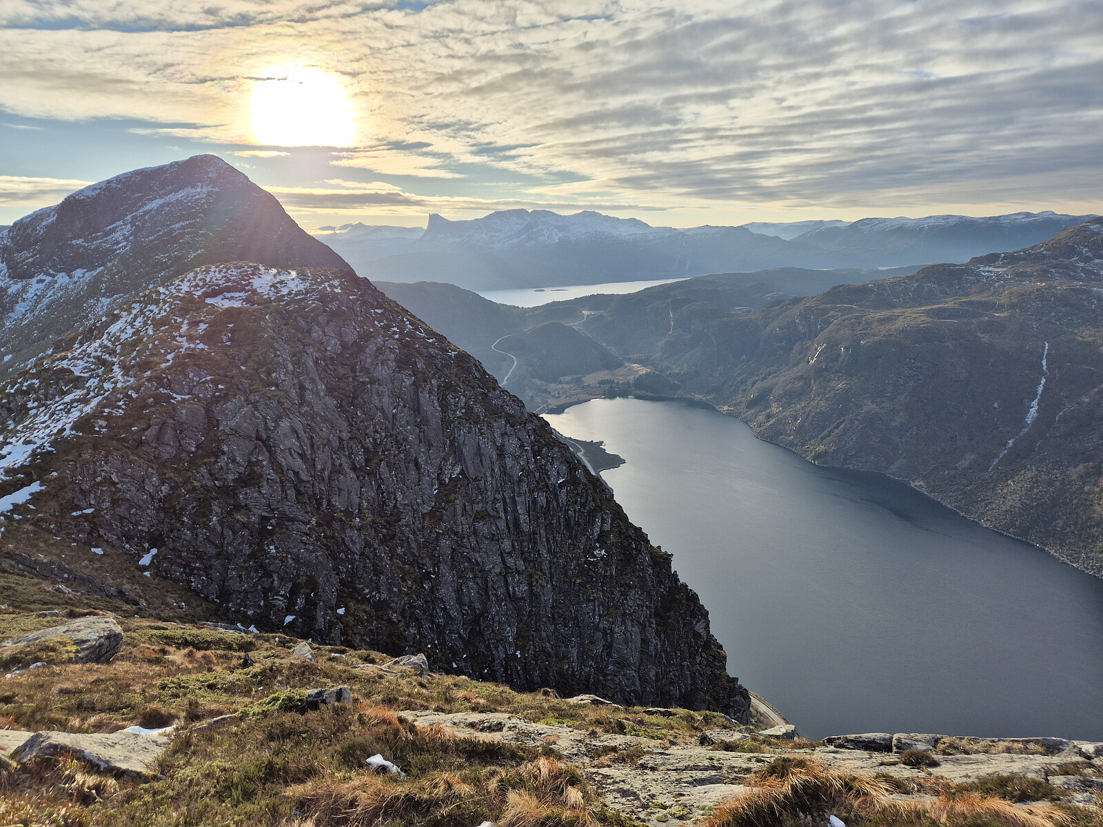 Litt bratt og luftig ned frå egga, men ikkje verre enn at eg takla det.