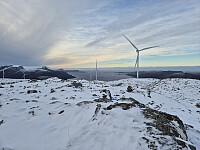 Vel nede frå Marafjellet fulgte eg anleggveg vidare og tok av anleggsvegen der den slutta og opp mot Aksla. Der var meir snø, men ikkje så mykje at eg ikkje kunne gå. Litt tungt oppover bakkane. Flott utsikt mot Hornelen.